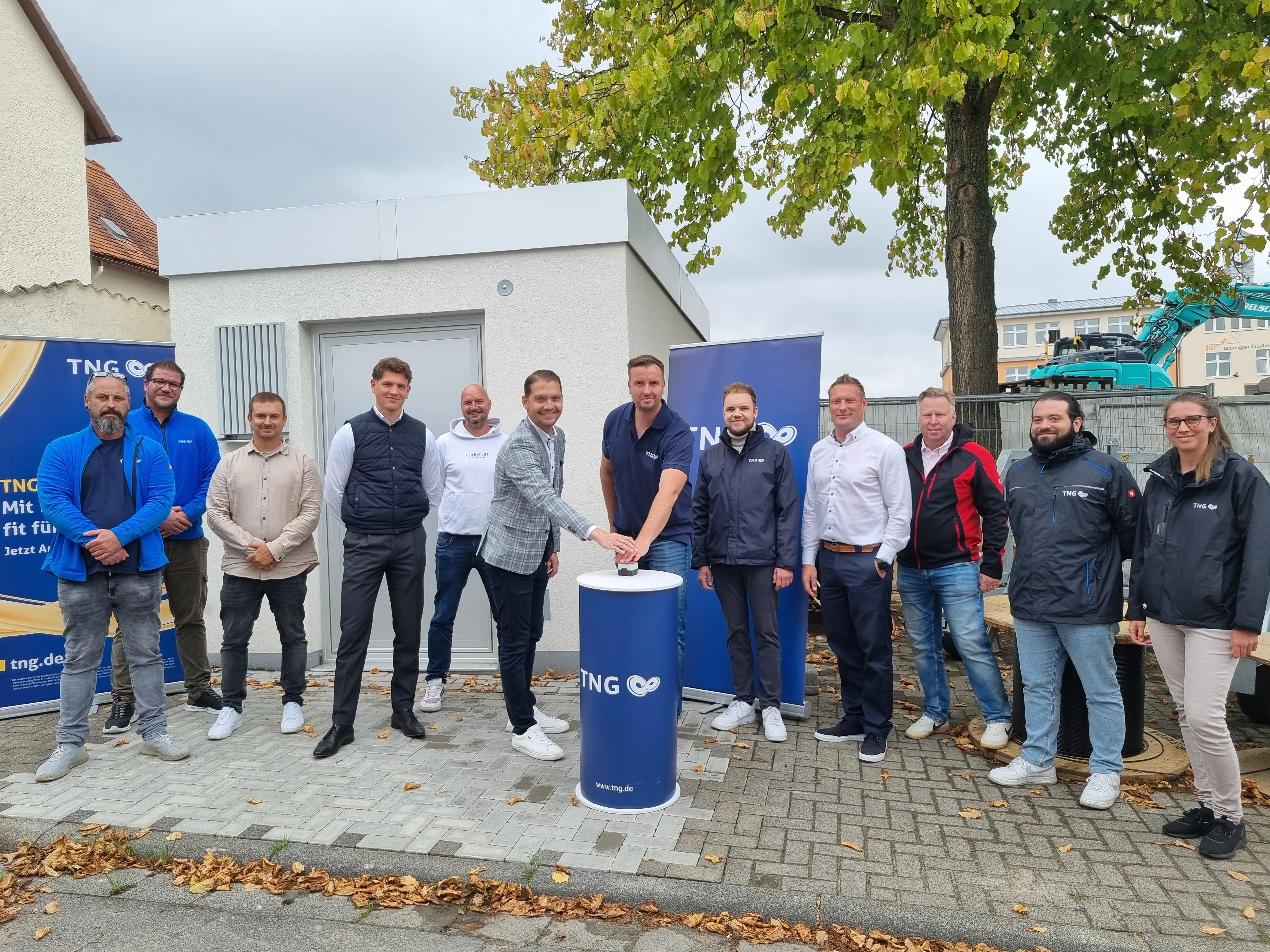 Um diesen Erfolg zu würdigen, trafen sich Vertreter der TNG Stadtnetz GmbH mit Bürgermeister Fabian Wedemann, Vertretenden des Bauunternehmens Aytac Bau GmbH und der Breitband Gießen GmbH zu einer symbolischen Aktivierung, um diesen Fortschritt zu feiern.